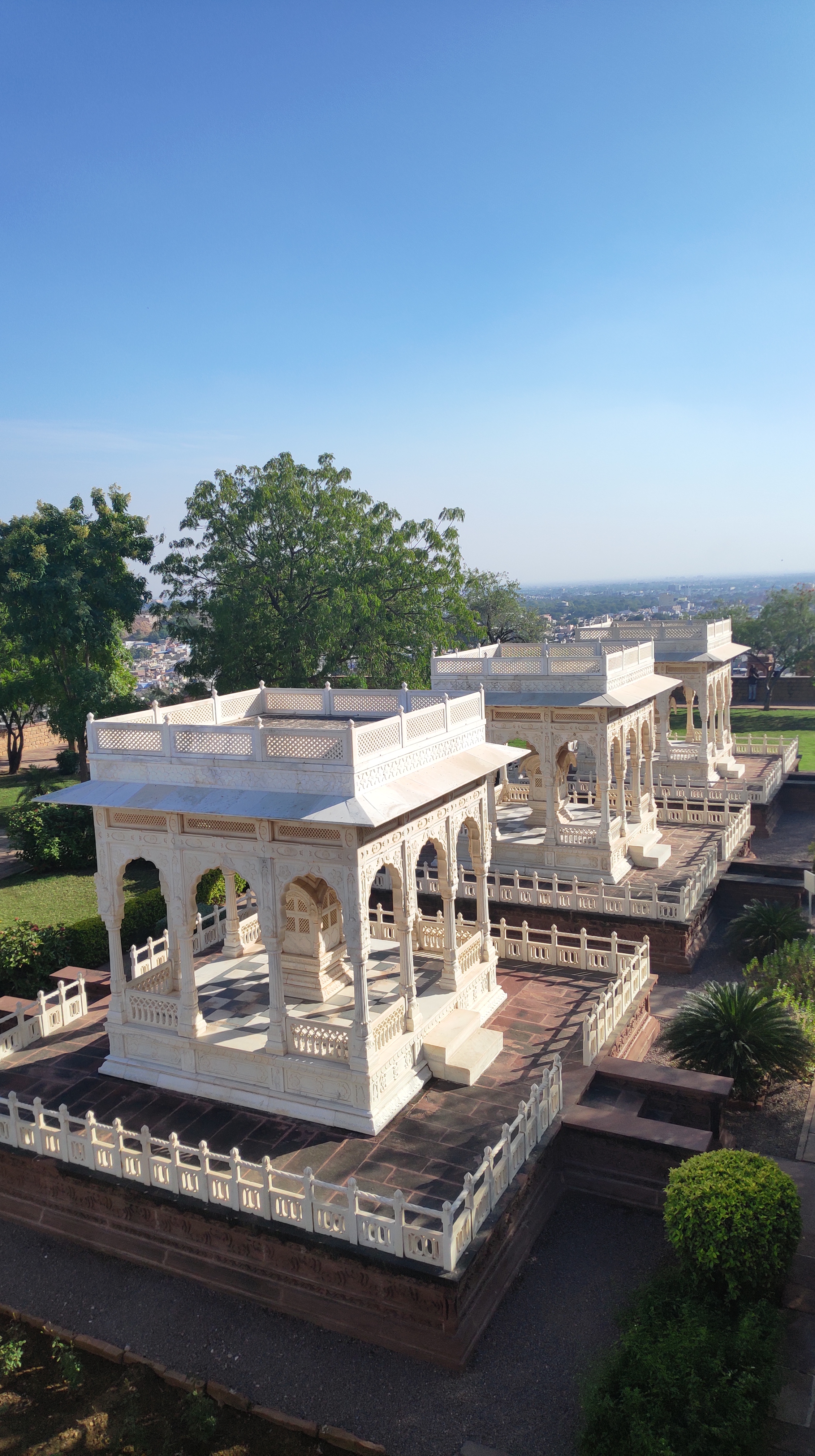 On Day 4, we drove back from Jaisalmer to Jodhpur, reached the elegant Jasvant Thada at around 3pm. Beautiful monument, carved out of marble, with good view of Umaid Palace and Mehrangarh fort. We strolled around, majorly clicking pics, spent around 40-45 mins here.