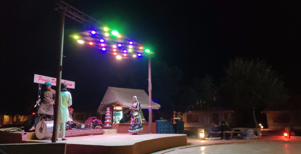 We reached the Prince Desert Camp at around 6:45pm, there was a traditional welcome (not very enthusiastically done I must say), here we met the manager, Mr.Gajender singh. He explained us well about the facilities at the resort, told the cultural activities starts at 7pm and then asked a young man Shoaib to bring our luggage to our tent. Tent was beautiful, way beyond our expectations. We hadn’t expected such good facilities in this remote part.