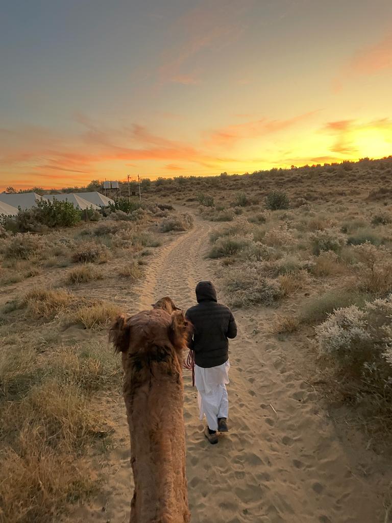 The camel ride took us past the camp fire place that we had done star gazing the previous night, the desert seemed much more calmer, thanks to no crowd in the morning. After around 15-20 mins ride, we alighted from the camels and waited for the sunrise.