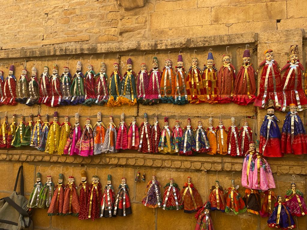 We loved the design of the Haveli, Anil explained how Jaisalmer was connected to the Silk route, how women were treated lower than men, and lots of stories. Haveli had a verandah, left side room had Thoran and Ganapathi, a Shwethambar jain design. A pulley through which workers would need to pull rope to fan the landlords inside. The woodwork was done with mix of desert wood and sandstone. There was an arrival area, just inside the main entrance, people were welcomed by giving a sweet (hard version), which was essentially prepared mixing 500gms of opium & 5kgs jaggery, truly high on life. Kitchen area looked neat with fire place, storage room, and elegant looking shelves. We went over Munim (main accountant) room, god’s room, we also explored rooms upstairs, similar design as downstairs. We took some great pics and a general good feeling. After the Haveli visit, it was time for some street shopping, aplenty.