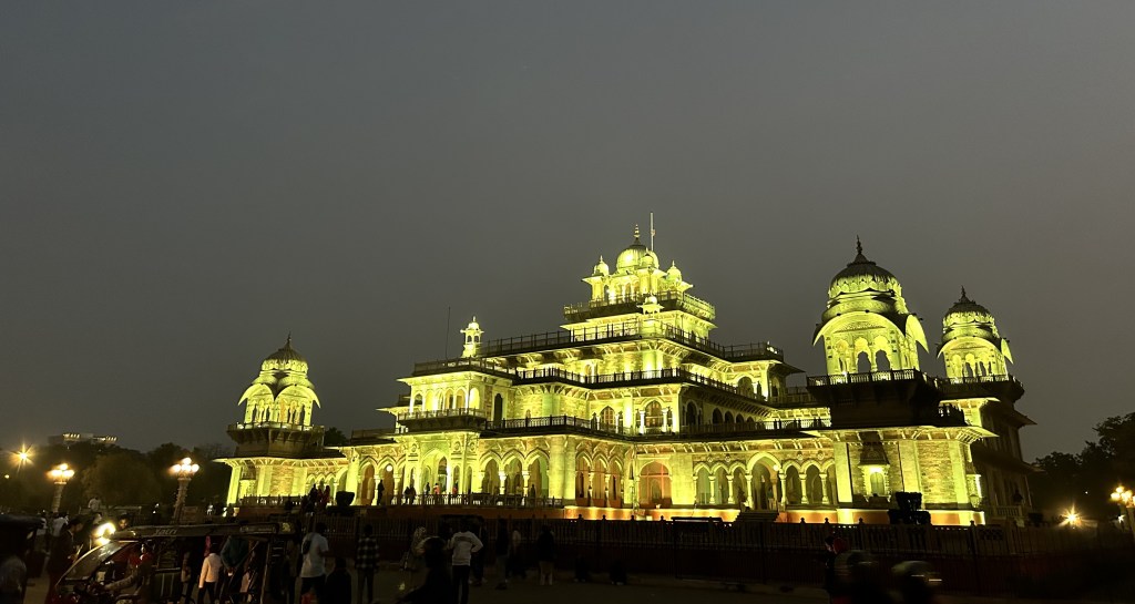 We bought some shirts for me, bedsheets, bags, etc. We walked back at one end of the market and took an auto. Along the way, the Albert Hall made a visible impact with its well-lit and tastefully designed building. We would visit it next day. After reaching our homestay, we ordered some Roti and Dal Tadka over Zomato for dinner, had it at their dining table, took a nice hot shower and slept off. It was a great day, although a bit sad how this brilliant site had not been managed well.